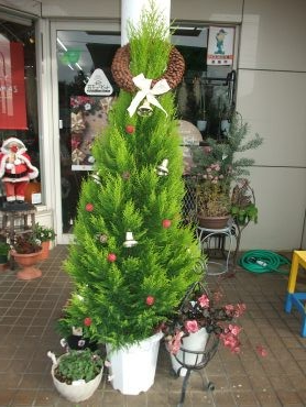 クリスマス風に飾ったゴールドクレスト